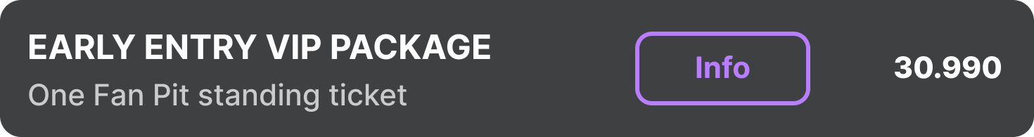 The tour will also offer a variety of different VIP packages and experiences for fans to take their concert experience to the next level. Packages vary but may include premium tickets, access to an intimate backstage tour, invitation to the pre-show VIP lounge, specially designed VIP gift item & more. VIP package contents vary based on the offer selected. For more information, visit vipnation.eu.
