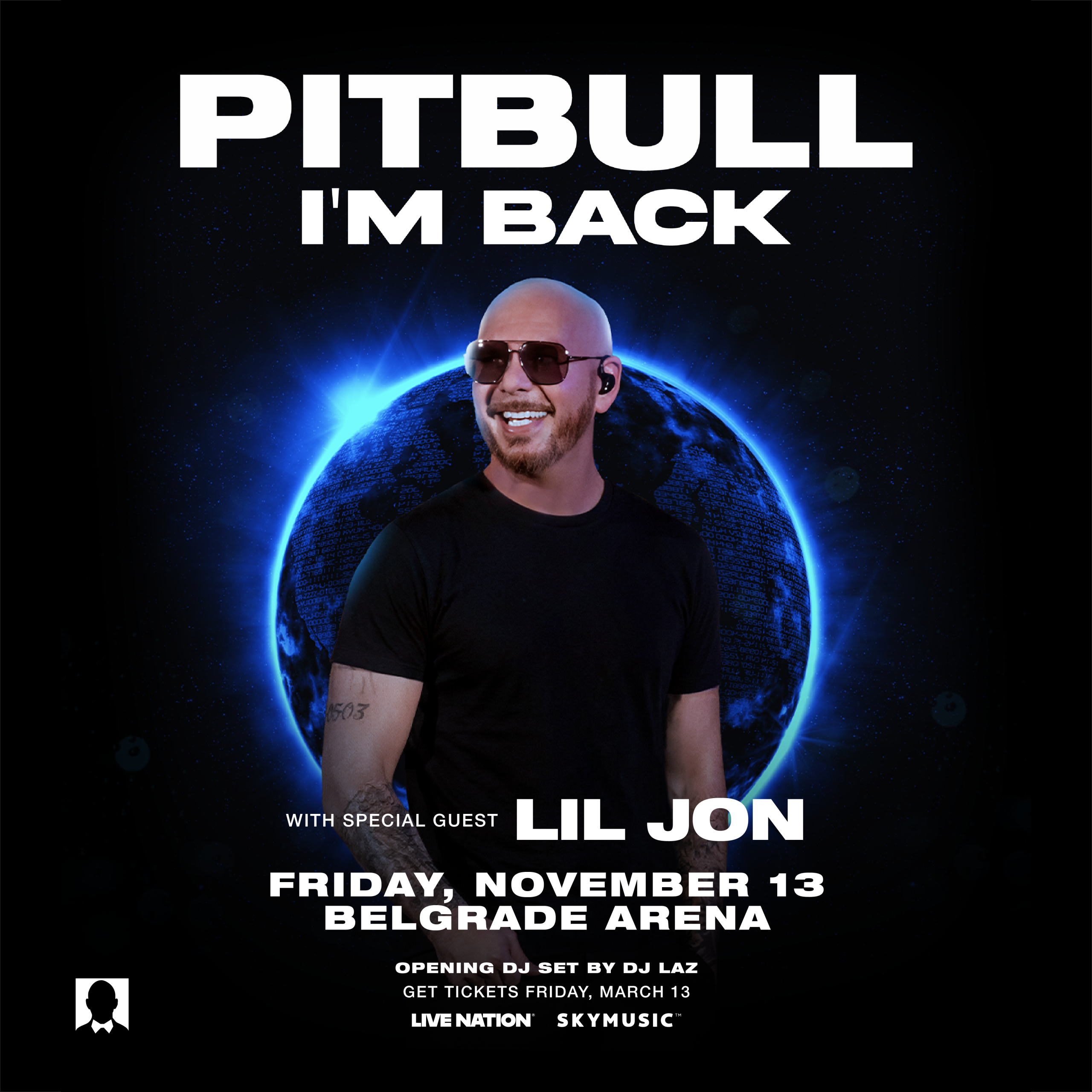 Globalna superzvezda Pitbull (Mr. 305 / Mr. Worldwide) vraća žurku u Evropu novim, dodatim arenskim datumima u okviru svoje velike ‘I’M BACK’ turneje, odgovarajući na kontinuiranu potražnju fanova širom regiona. Spektakl koji osvaja svet i oduševljava publiku širom planete stiže u Beogradsku Arenu 13. novembra!