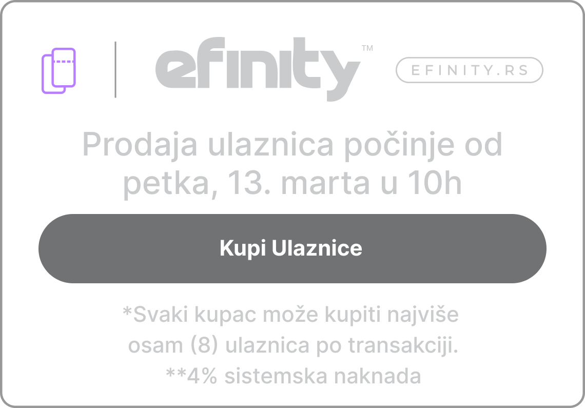 Redovna prodaja počinje u petak, 13. marta u 10 časova na sajtu efinity.rs.