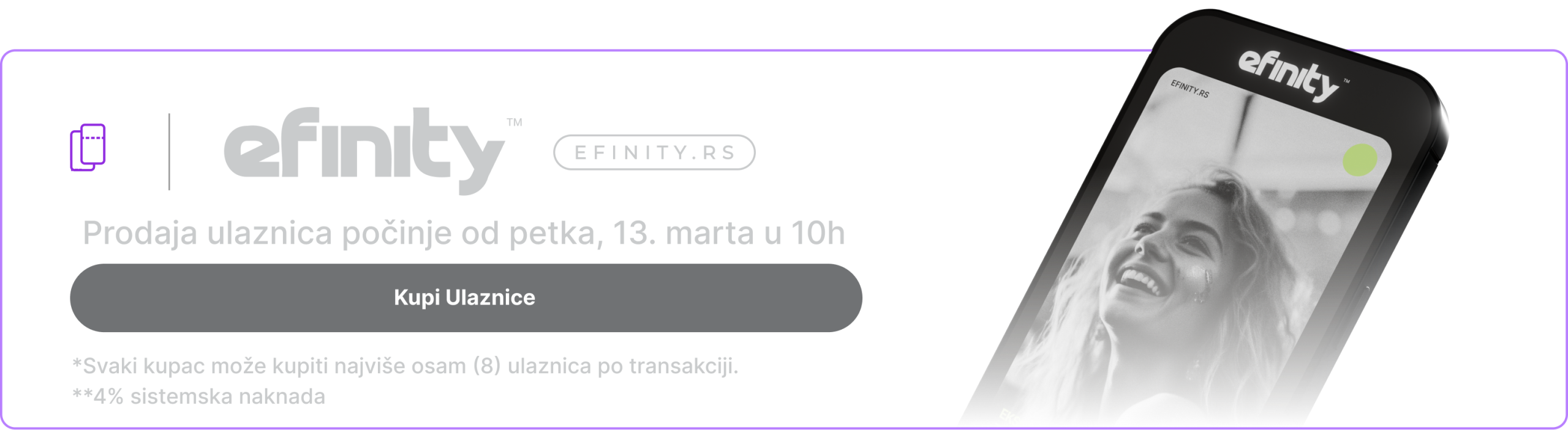 Opšta prodaja ulaznica počinje u petak, 13. marta u 10 časova po lokalnom vremenu na sajtu efinity.rs.